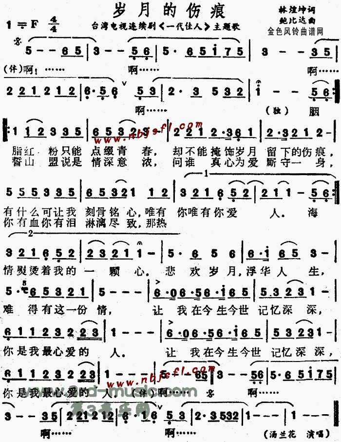 岁月的伤痕(《一代佳人》主题歌)[简谱]