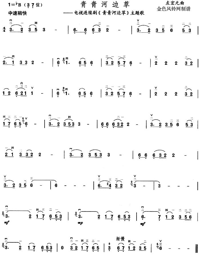 青青河边草(同名电视剧主题歌)[二胡曲谱]
