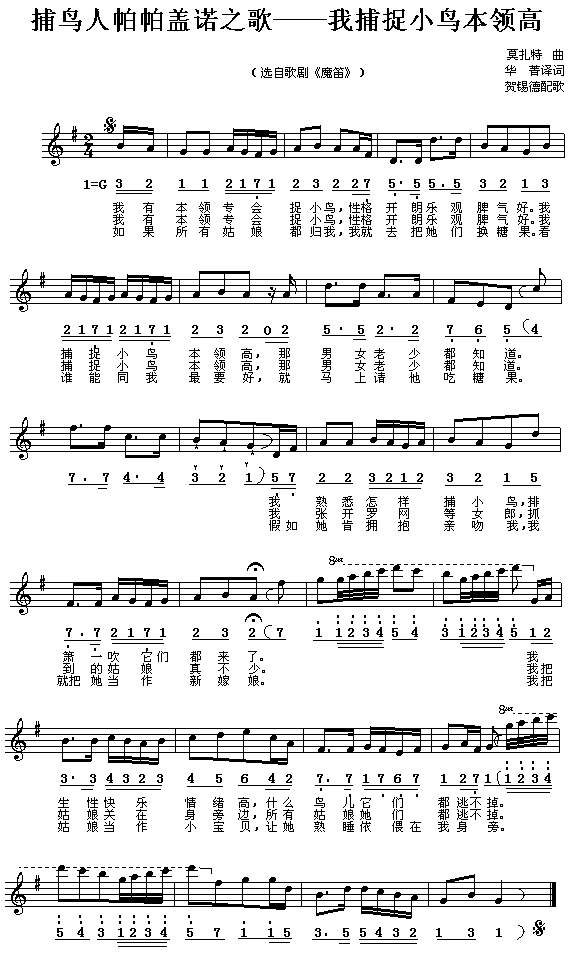 我捕捉小鸟本领高(歌剧《魔笛》选曲)[简谱]