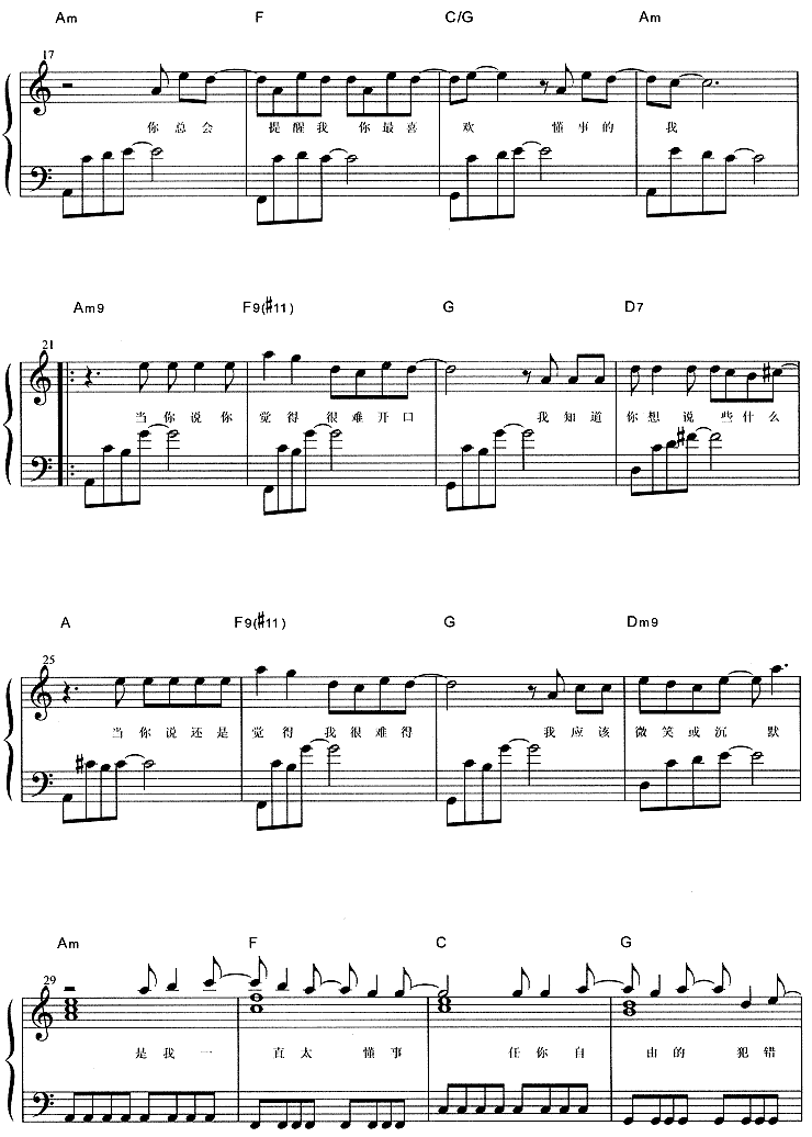 懂事[钢琴曲谱]