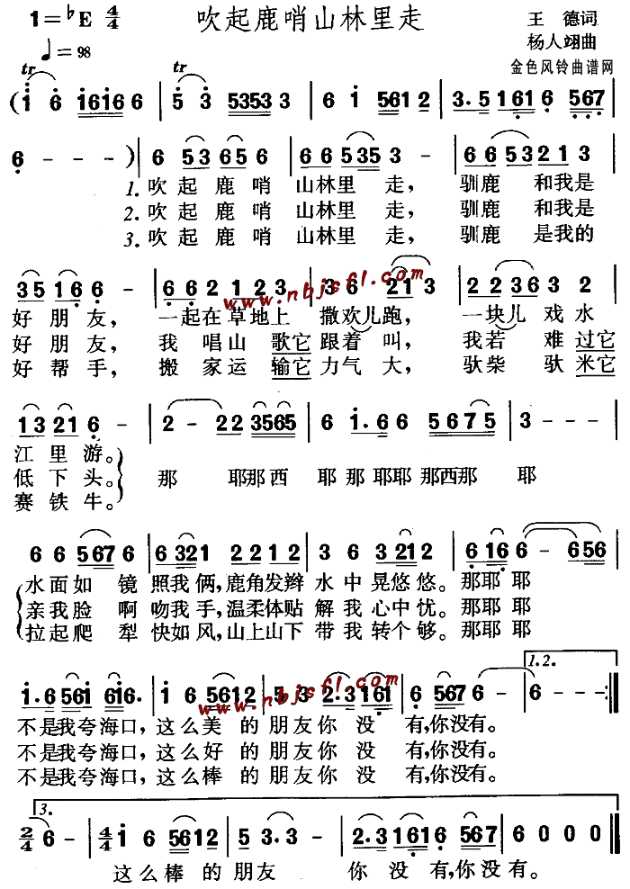 吹起鹿哨山林里走(儿童歌)[简谱]