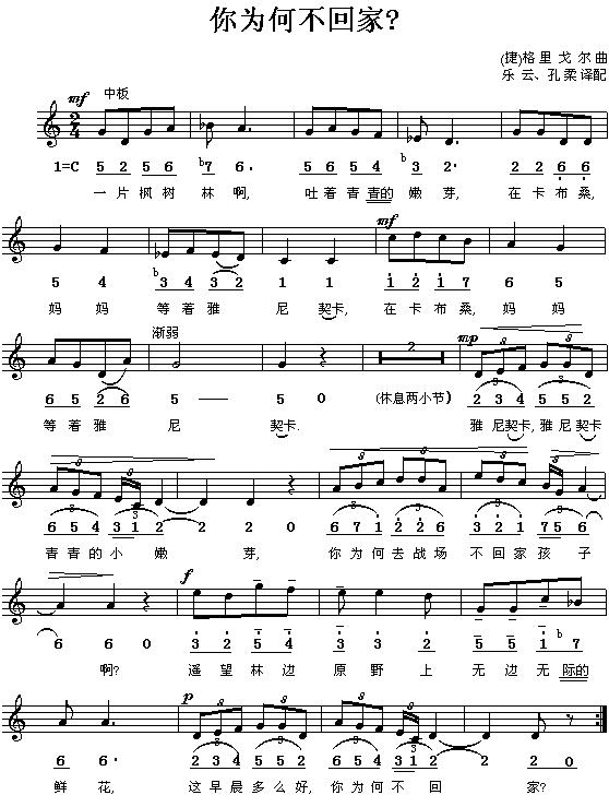 你为何不回家(捷)[简谱]