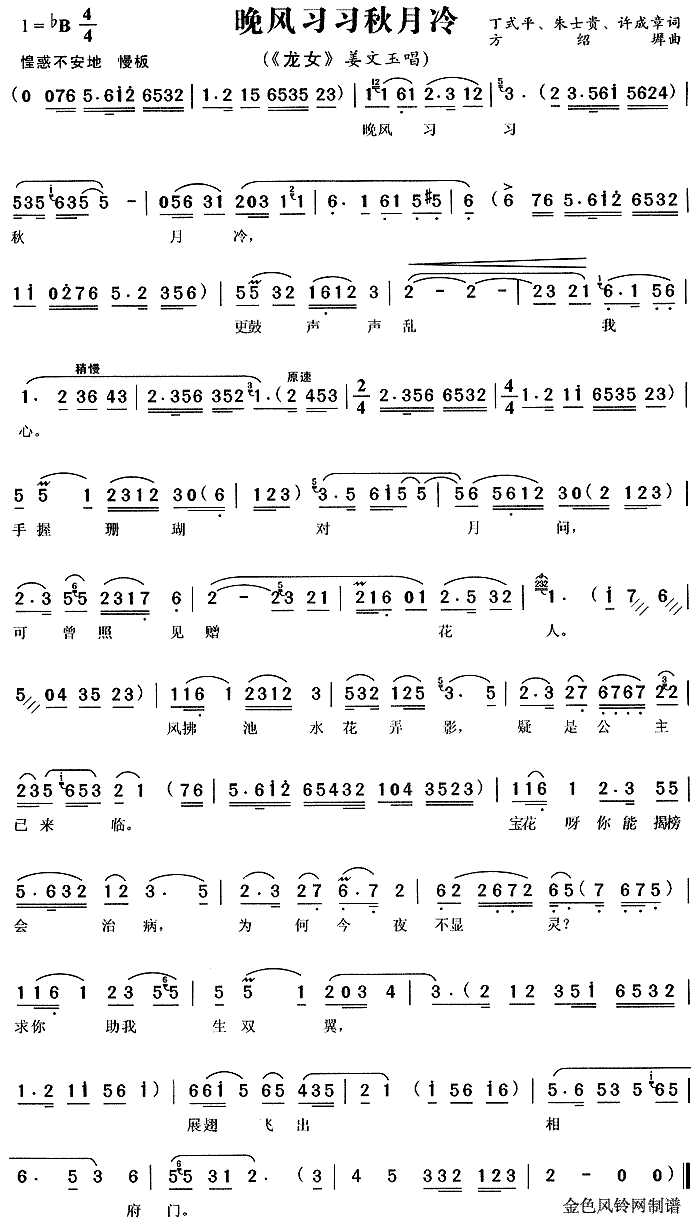 晚风习习秋月冷《龙女》[戏曲曲谱]