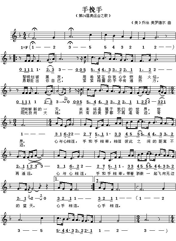 手挽手(第24届奥运会之歌)[简谱]