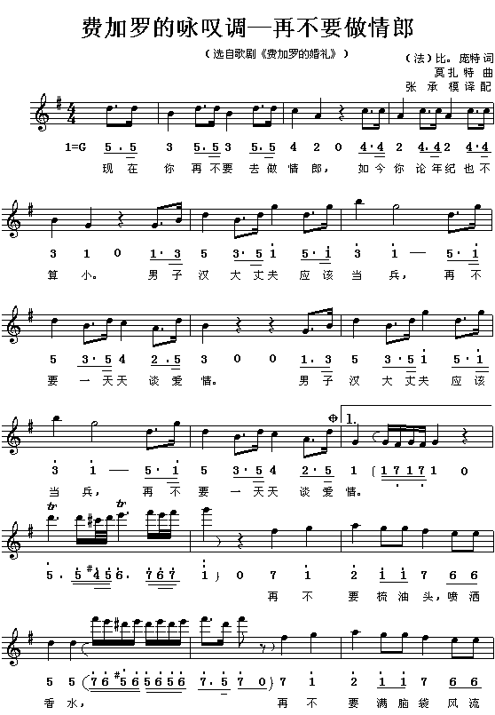 再不要做情郎(《费加罗的婚礼》选曲)[简谱]