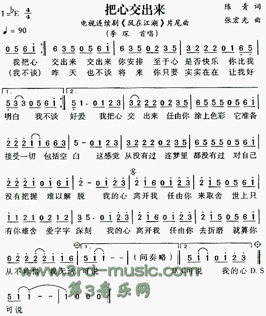 把心交出来(《凤在江湖》片尾曲)[简谱]