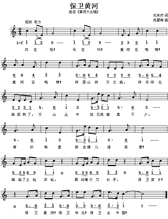 保卫黄河(《黄河大合唱》之七)[简谱]