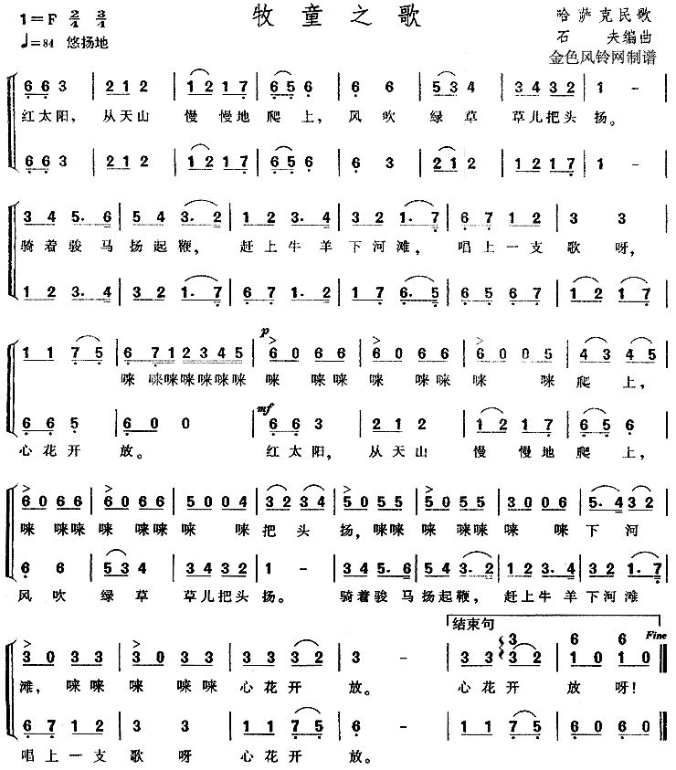 牧童之歌(哈萨克民歌)[合唱曲谱]
