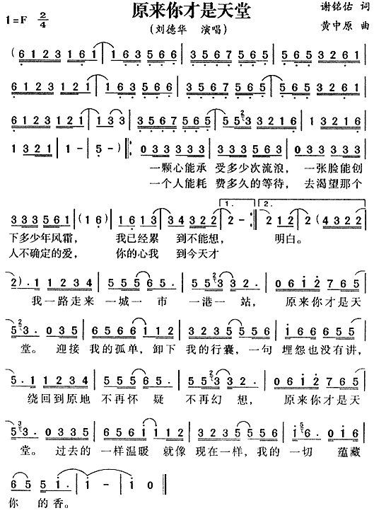原来你才是天堂[简谱]