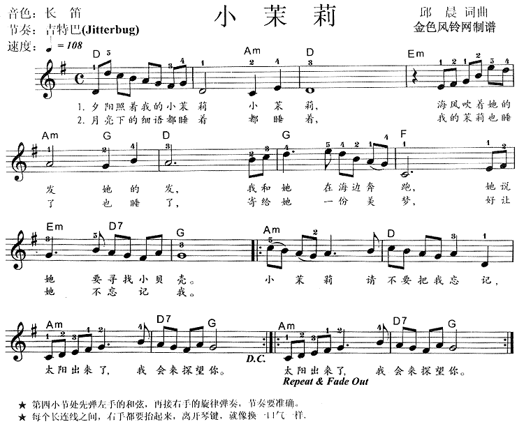 小茉莉[电子琴谱]