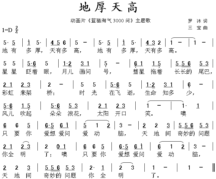 地厚天高(《蓝猫淘气三千问》主题曲)[简谱]