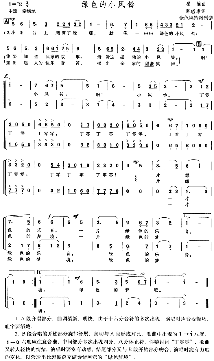 绿色的小风铃(儿童歌)[合唱曲谱]