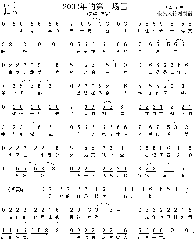 2002年的第一场雪[简谱]