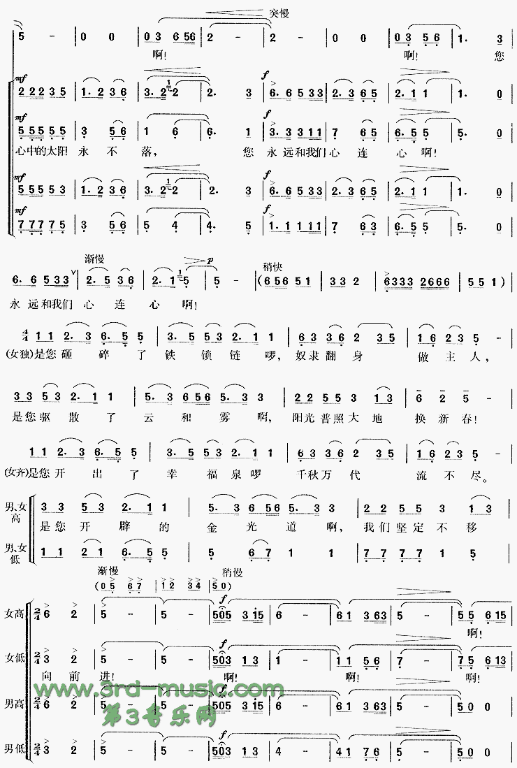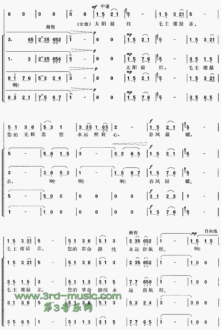 太阳最红毛主席最亲[合唱曲谱]