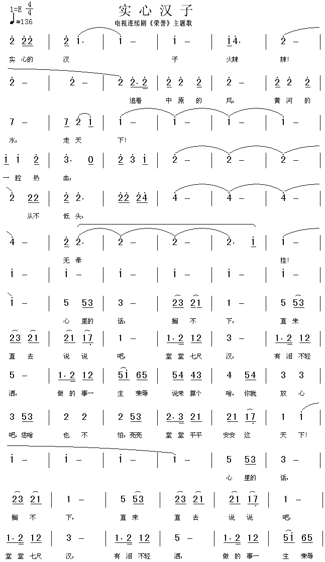 实心汉子(电视剧《荣誉》主题歌)[简谱]