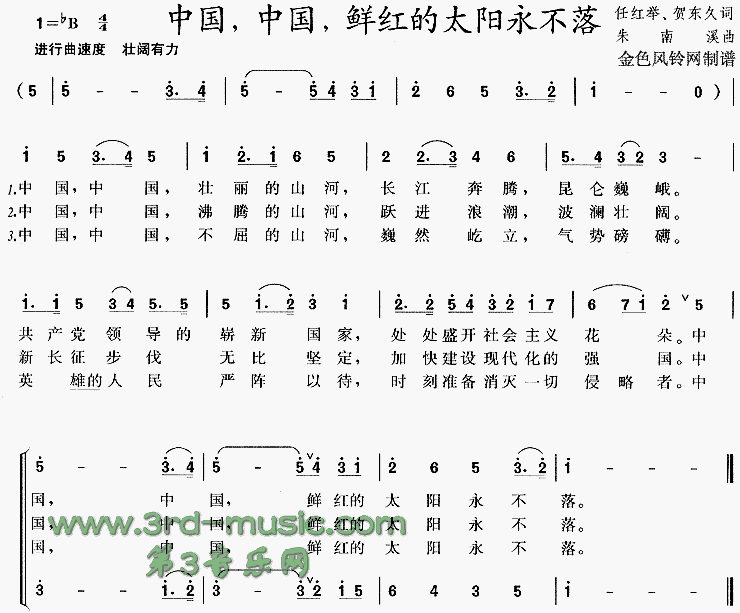 中国中国鲜红的太阳永不落[合唱曲谱]