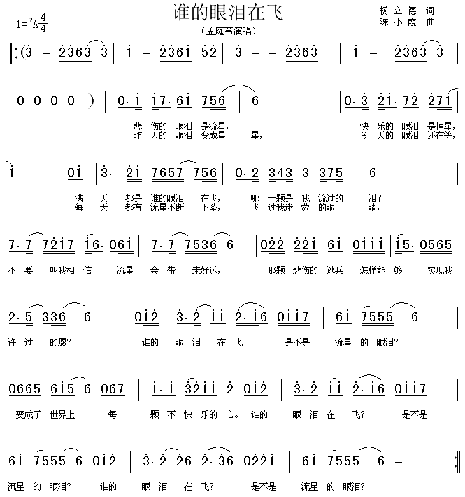 谁的眼泪在飞[简谱]