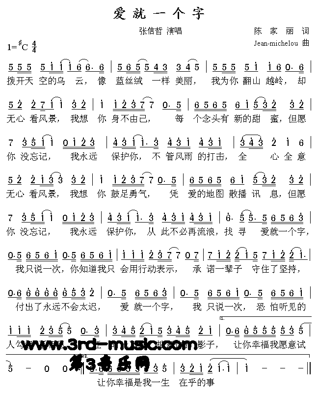 爱就一个字(《宝莲灯》片尾曲)[简谱]