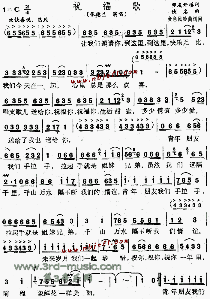 祝福歌[简谱]