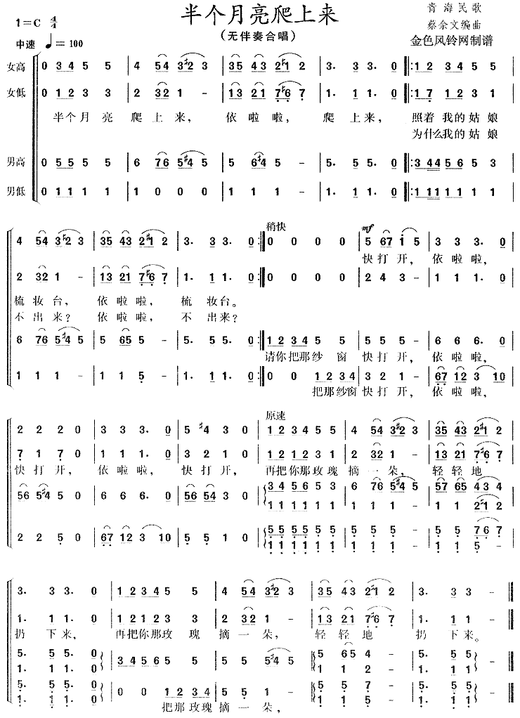 半个月亮爬上来(青海民歌)[合唱曲谱]