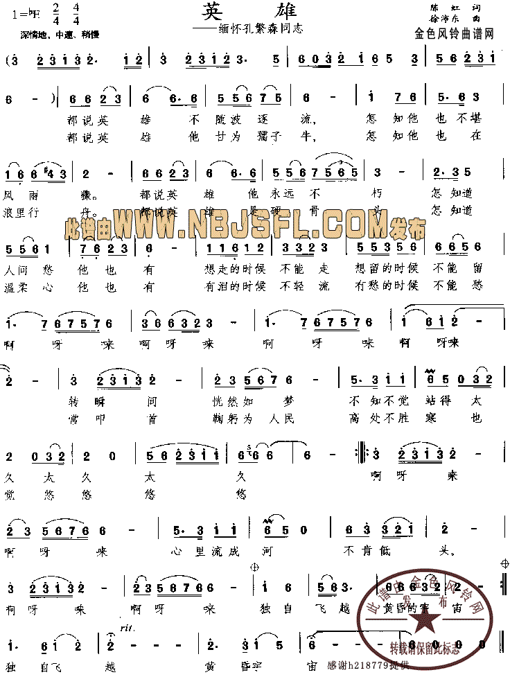 我的中国心(简谱/五线谱对照)[简谱]