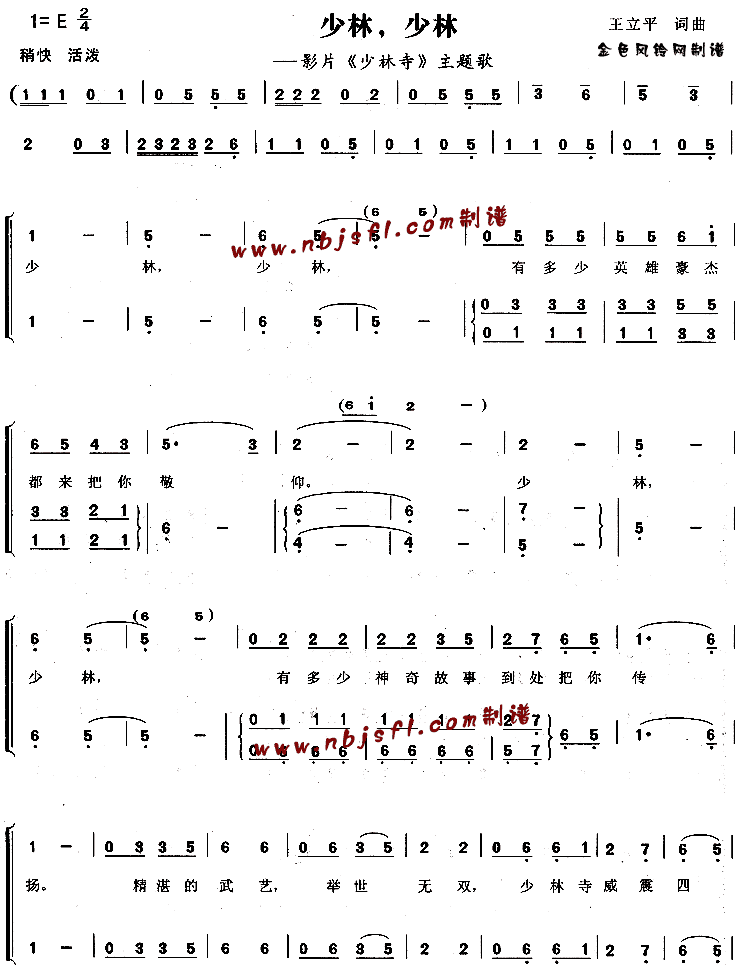 少林少林(《少林寺》主题歌)[合唱曲谱]