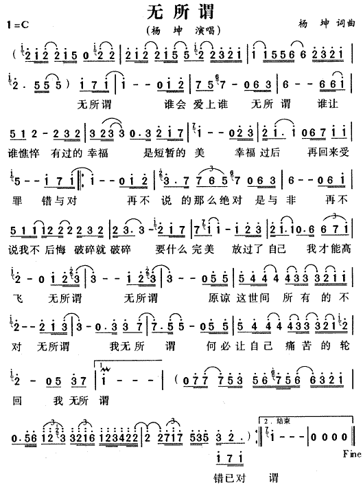 无所谓[简谱]