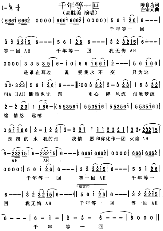 千年等一回(《新白娘子传奇》主题歌)[简谱]