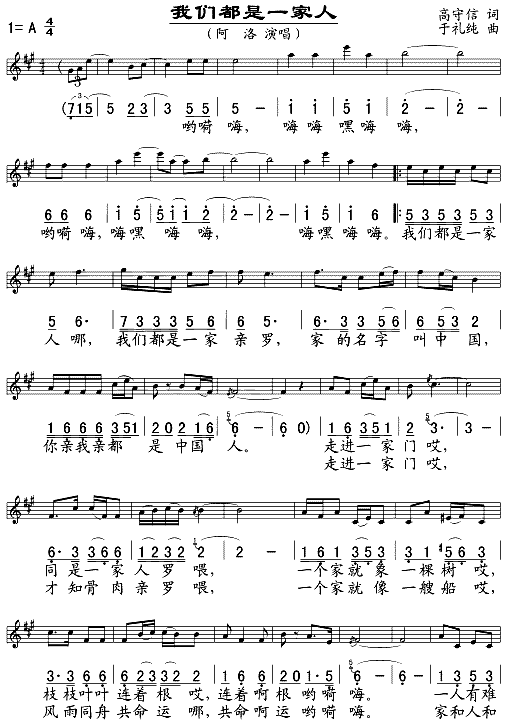 我们都是一家人(五线谱/简谱对照)