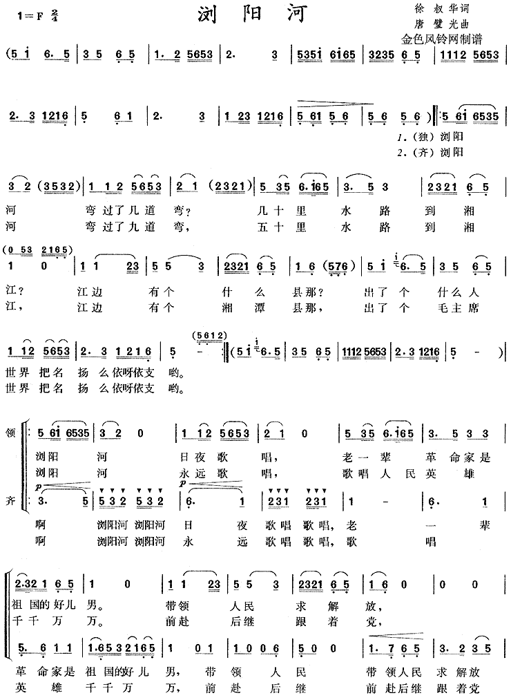 浏阳河[合唱曲谱]