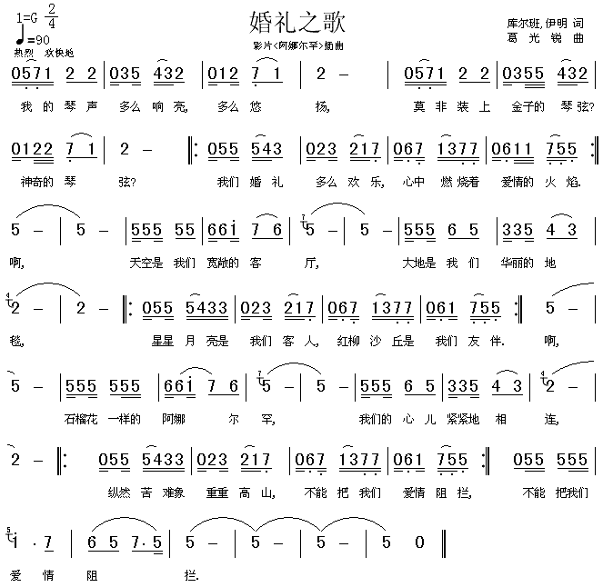 婚礼之歌(影片《阿娜尔罕》插曲)[简谱]