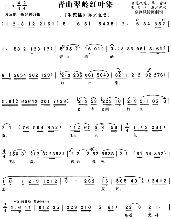 青山翠岭红叶染《生死擂》[戏曲曲谱]