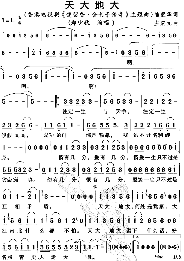 天大地大(《楚留香·舍利子传奇》主题曲)[简谱]