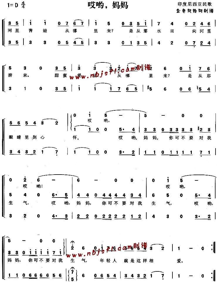 哎哟妈妈(印尼民歌)[合唱曲谱]