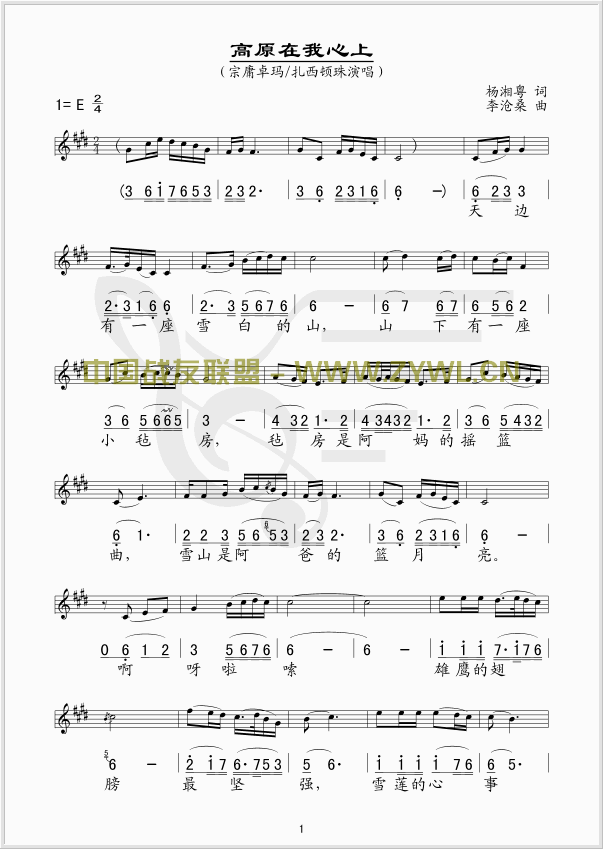 高原在我心上(五线谱/简谱对照)