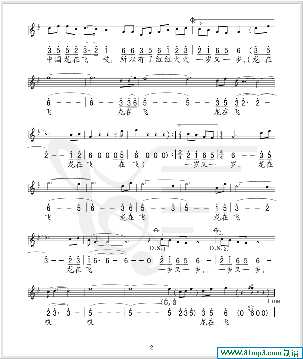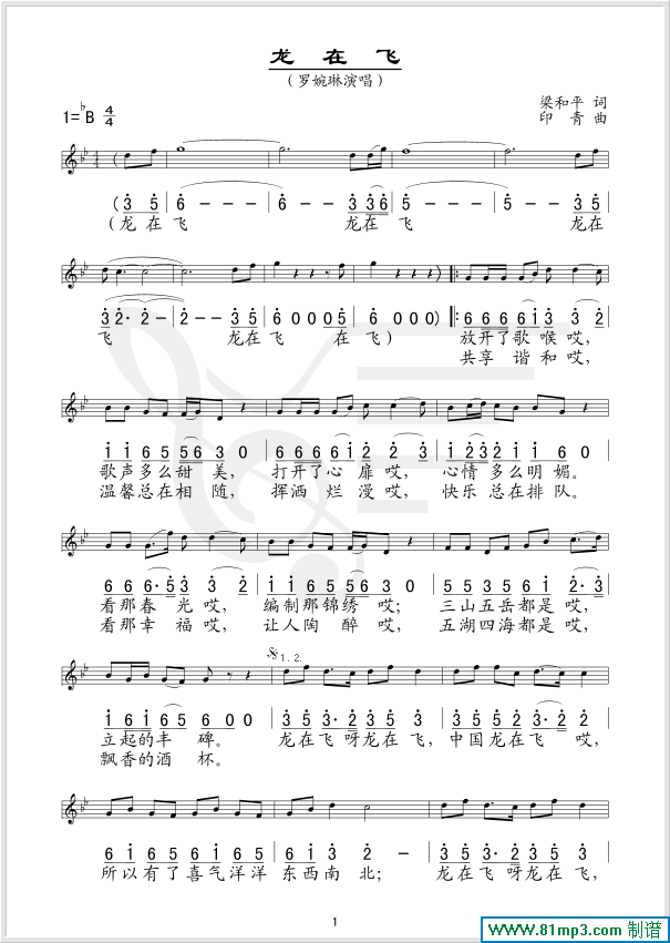 龙在飞(五线谱/简谱对照)