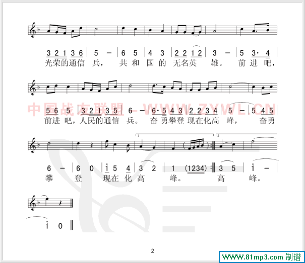 中国人民解放军通信兵进行曲(五线谱/简谱对照)