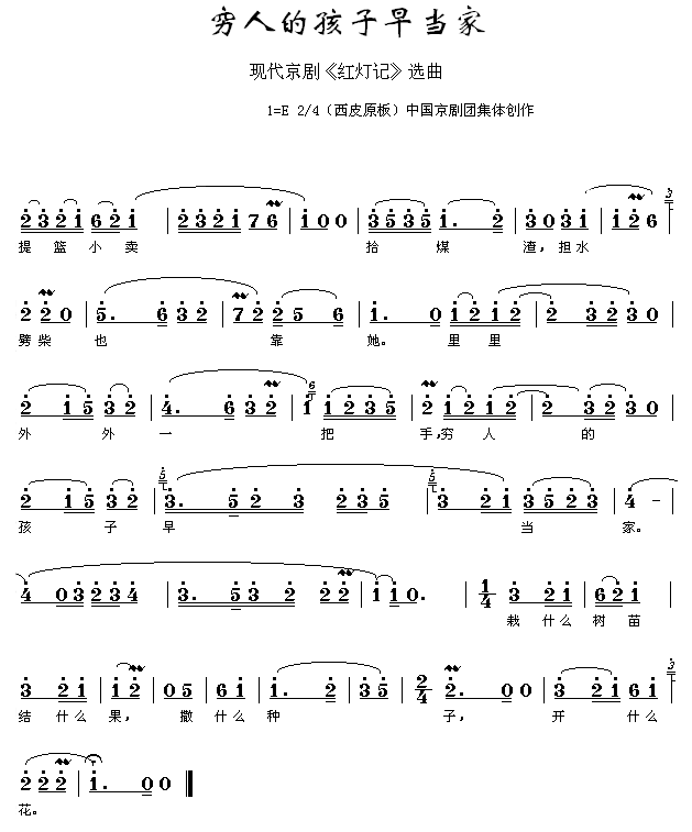 穷人的孩子早当家《红灯记》[戏曲曲谱]