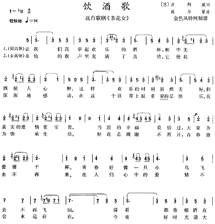 饮酒歌(《茶花女》选曲)[合唱曲谱]