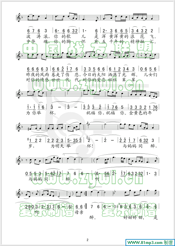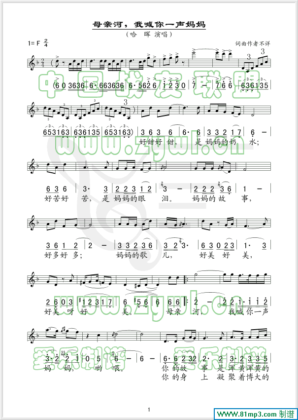 母亲河我喊你一声妈妈(五线谱/简谱对照)