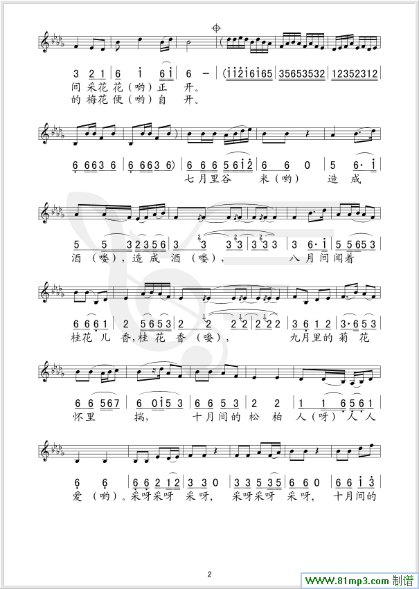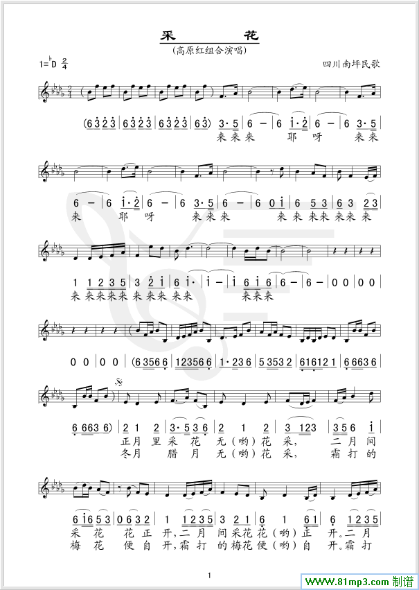 山丹丹开花红艳艳(陕甘民歌、五线谱/简谱对照)