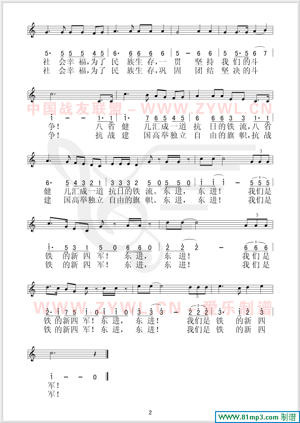 新四军军歌(《东进序曲》插曲、五线谱/简谱对照)