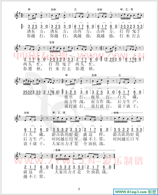 新四军军歌(《东进序曲》插曲、五线谱/简谱对照)