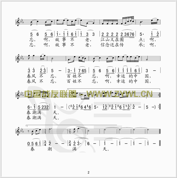 春风不忘(五线谱/简谱对照)