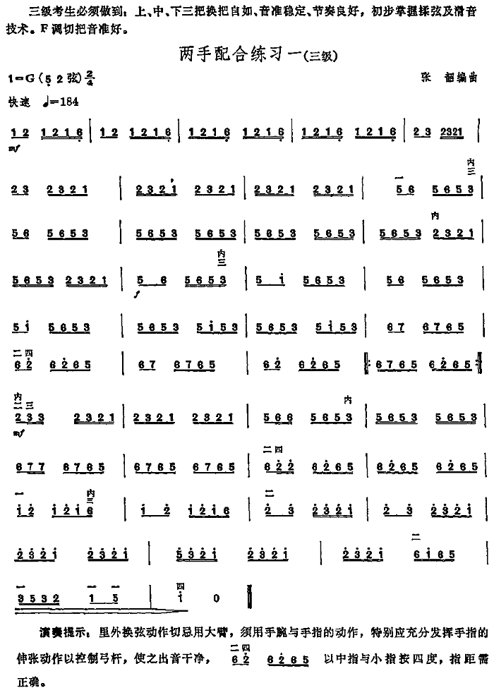 两手配合练习一(中国二胡考级规定演奏曲/三级)
