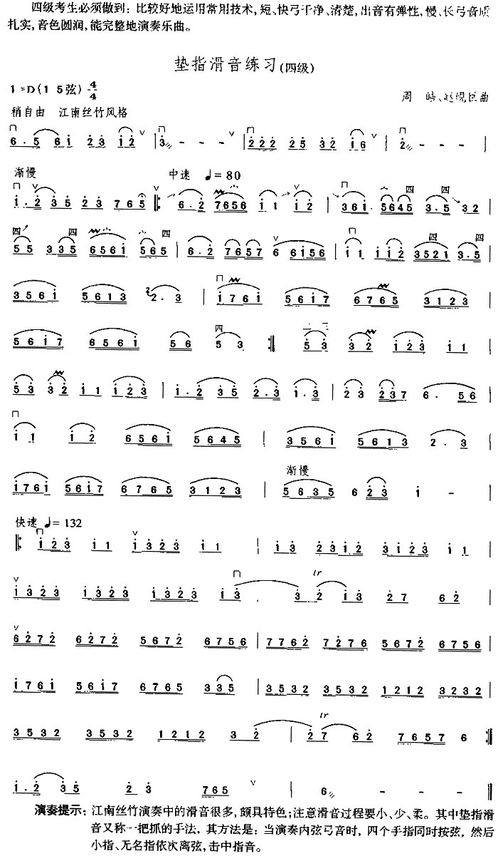 垫指滑音练习(中国二胡考级规定演奏曲/四级)