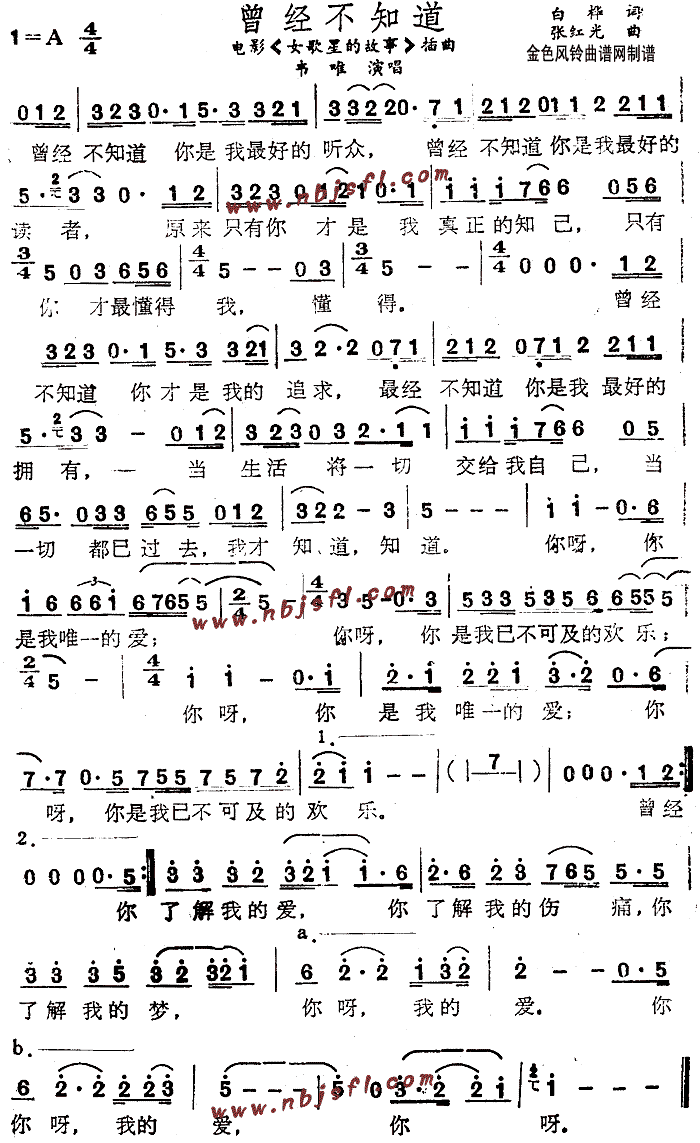 曾经不知道(《女歌星的故事》插曲)[简谱]