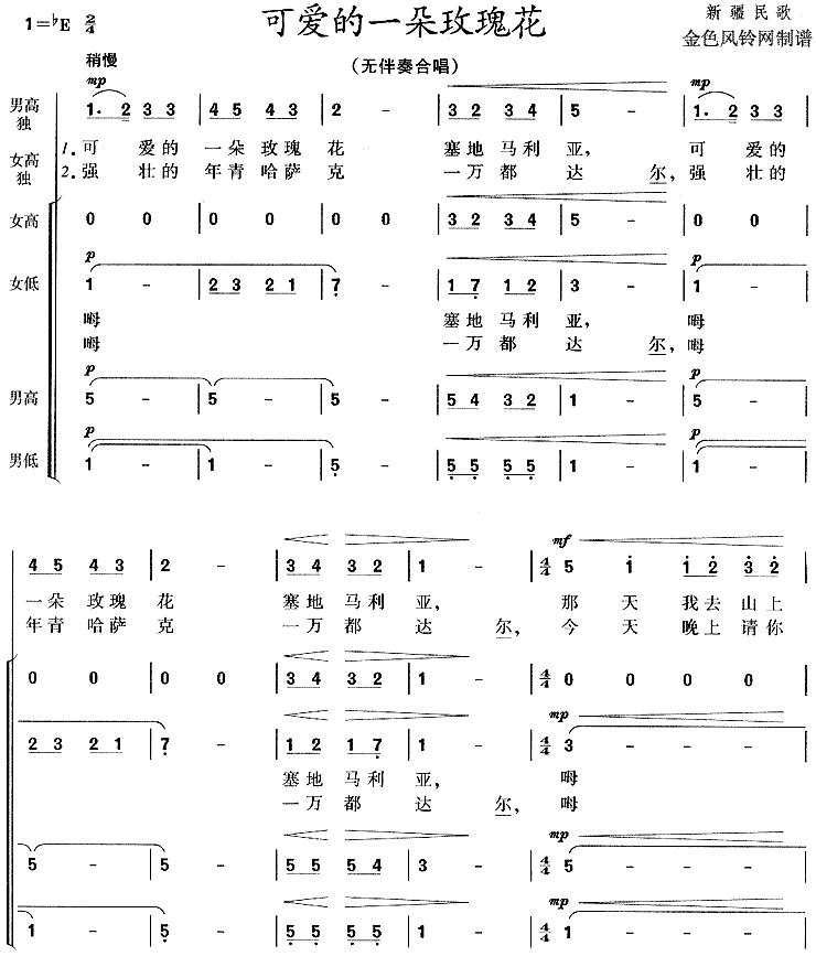 可爱的一朵玫瑰花(新疆民歌)[合唱曲谱]
