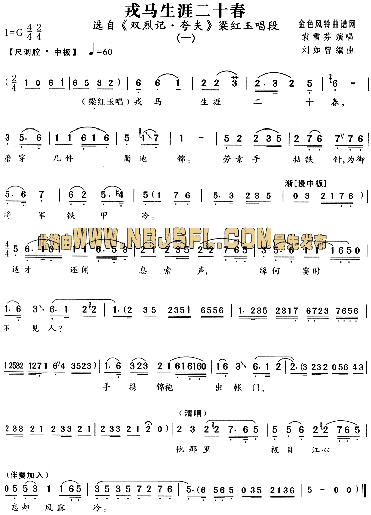 戎马生涯二十春(《双烈记·夸夫》唱段)