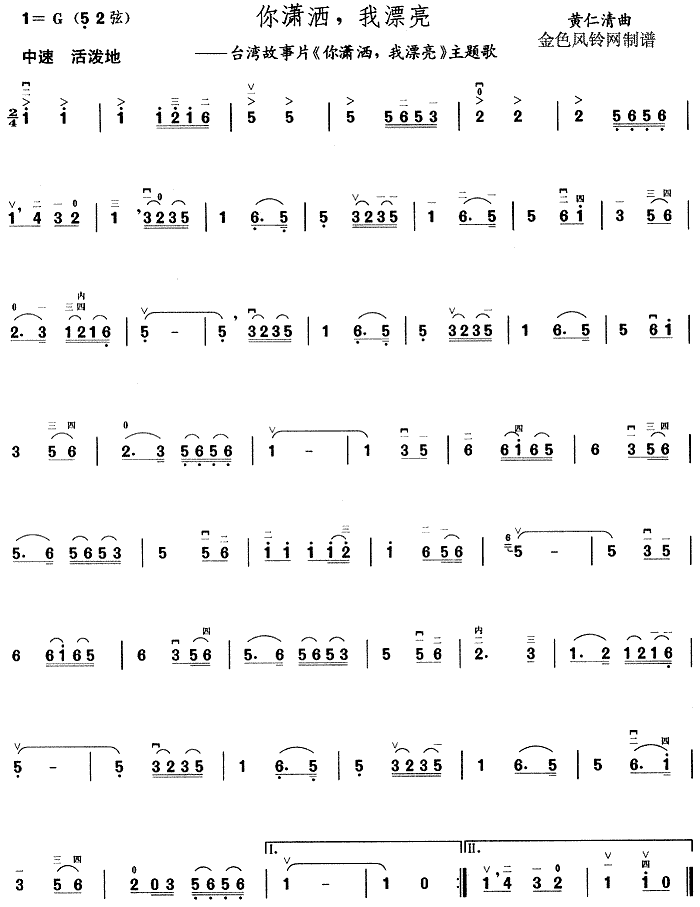 你潇洒我漂亮(同名电视剧主题歌)[二胡曲谱]